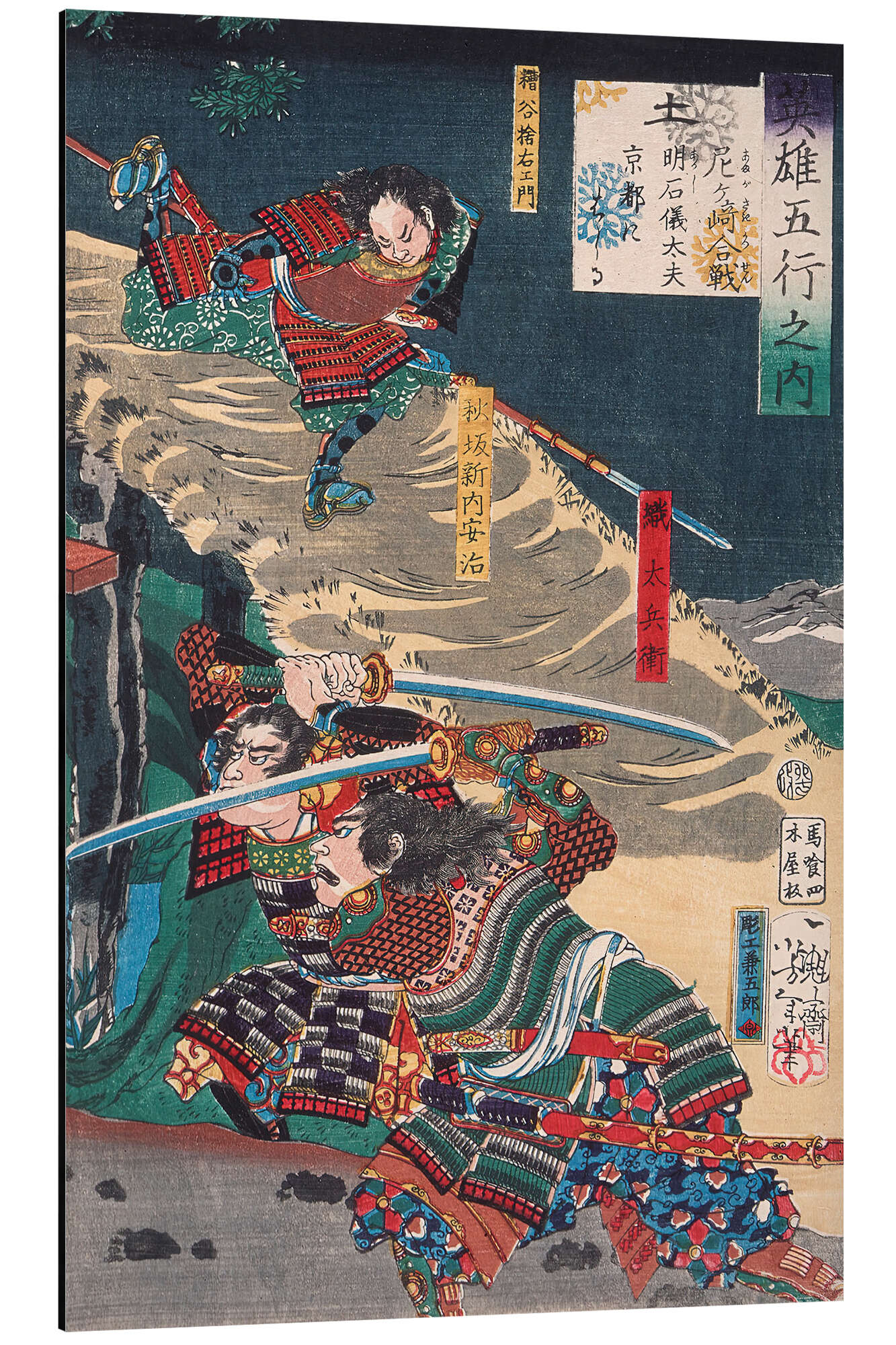 Posterlounge   Tableaux   Bleu   Tsukioka Yoshitoshi   Tableau en aluminium Akashi Gidayu in Kyoto during the Battle of Amagasaki, 1867