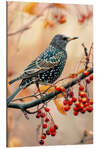 Posterlounge   Tableaux   Animaux   Oiseaux   Christian Müringer   Tableau en aluminium Starling with berries in autumn