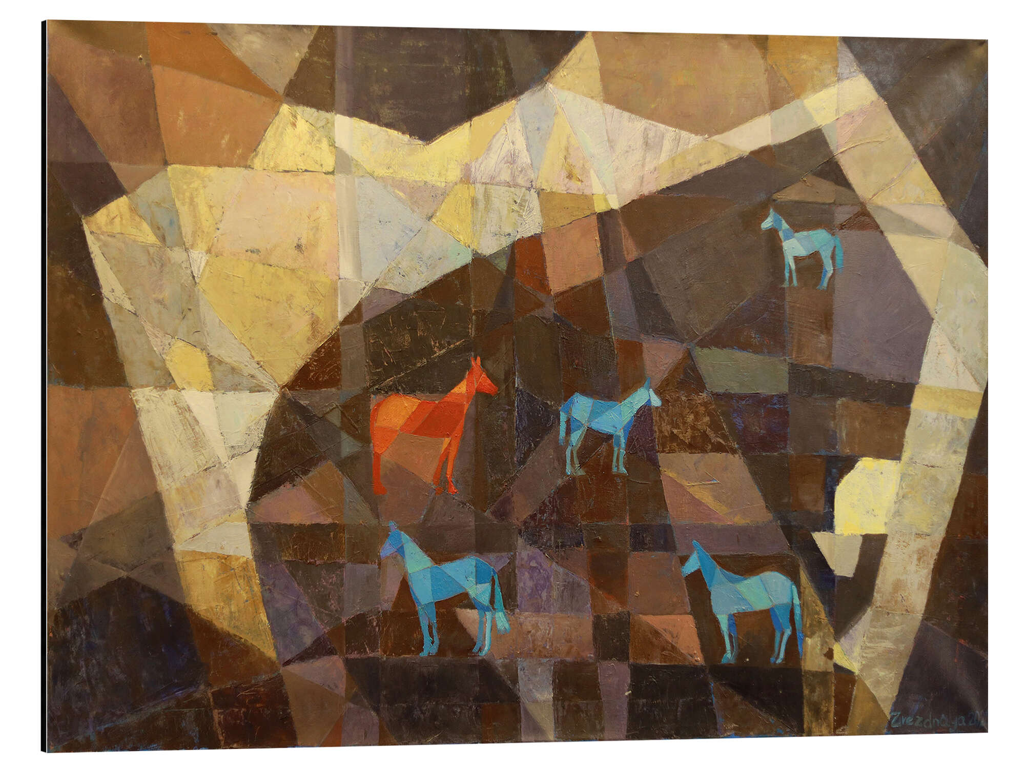 Posterlounge   Tableaux   Peinture   Art abstrait   Iuliia Kotenko   Tableau en aluminium Horses in the meadow
