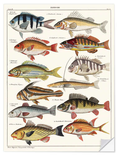 Posterlounge   Tableaux   Vintage   Sticker mural Varieties of Fish (German)