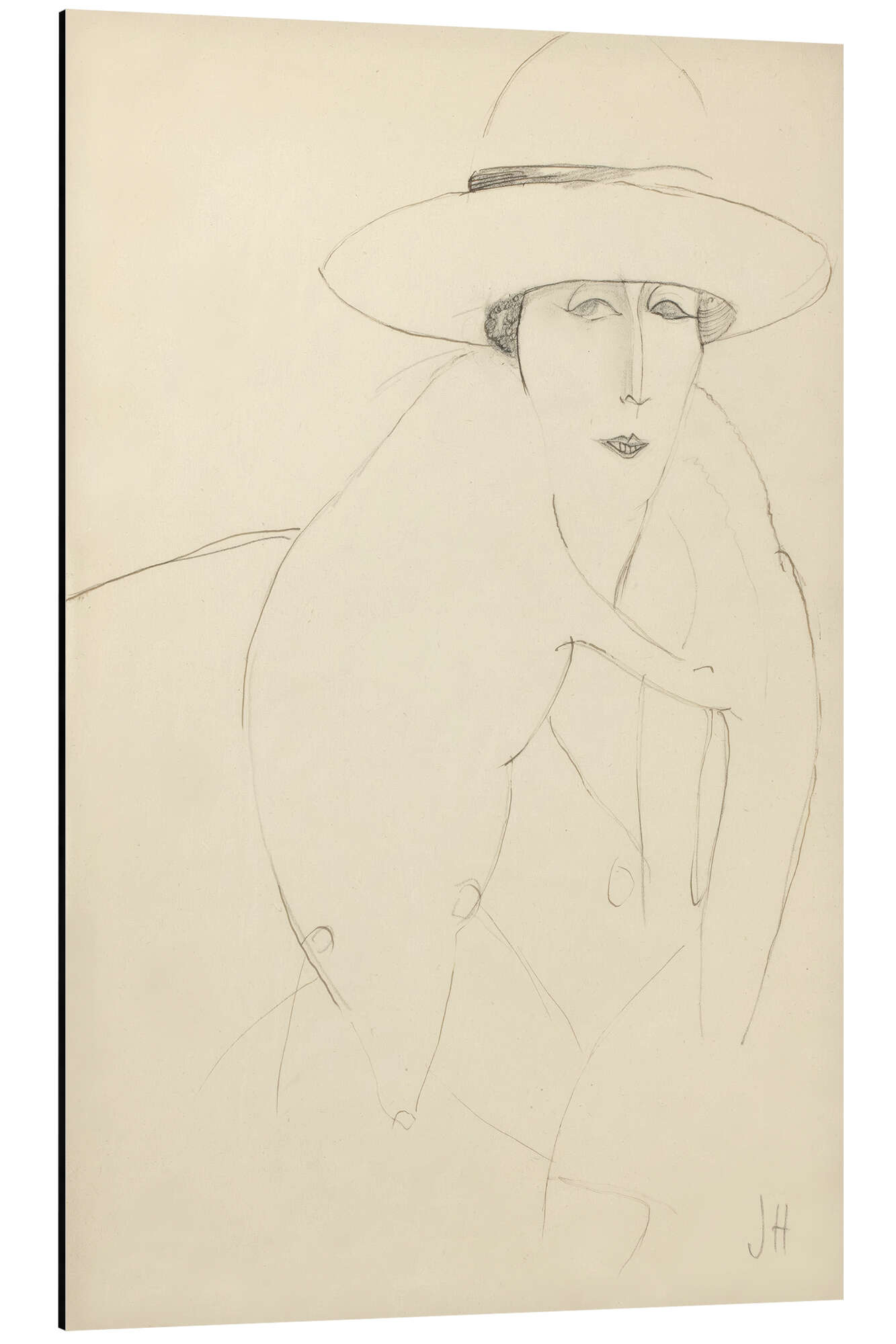 Posterlounge   Tableaux   Beige   Jeanne Hebuterne   Tableau en aluminium Femme au chapeau