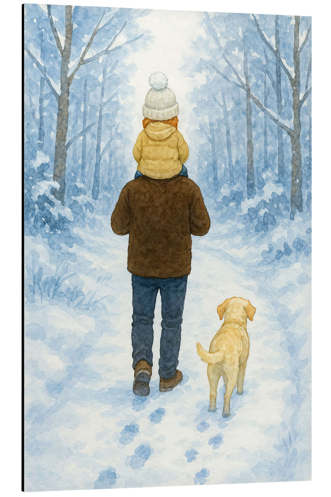 Posterlounge   Tableaux   Bleu   Natalie Bruns   Tableau en aluminium Winter walk with dad and labrador dog