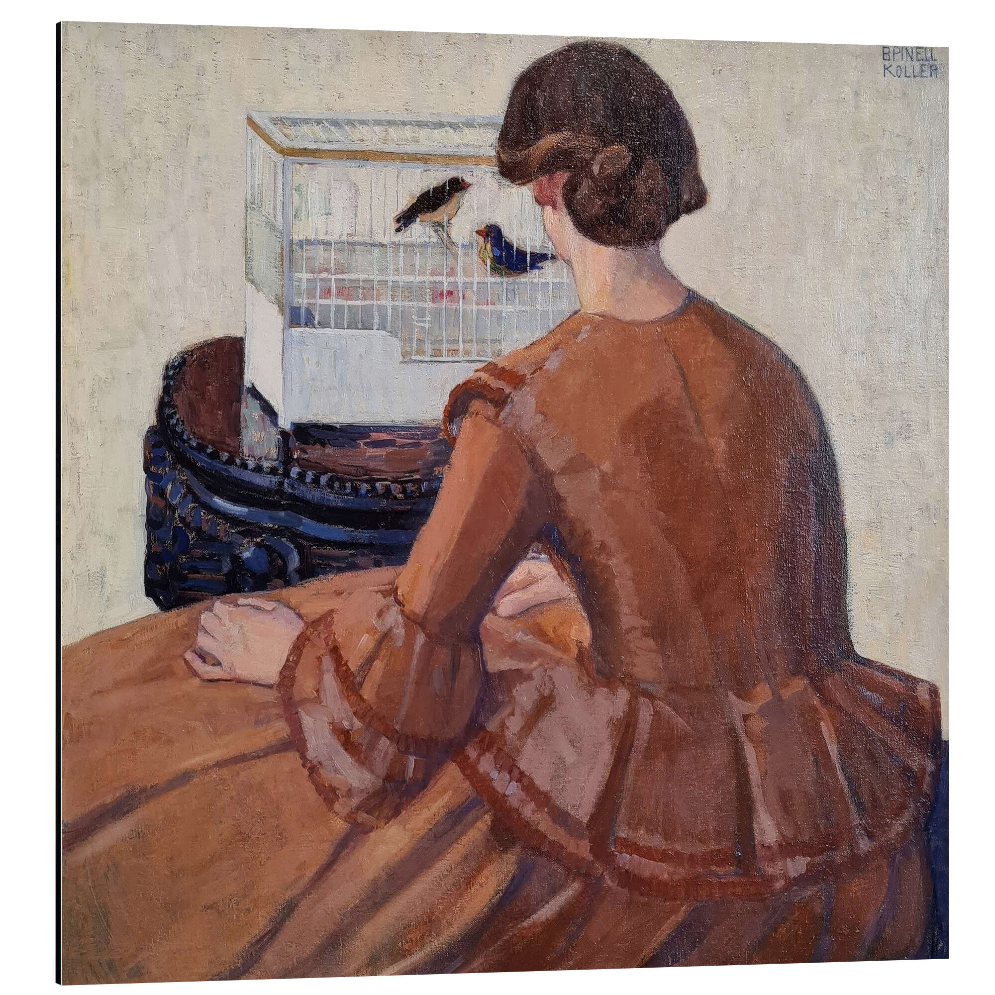 Posterlounge   Tableaux   Personnes   Femmes   Broncia Koller Pinell   Tableau en aluminium Young woman in front of birdcage
