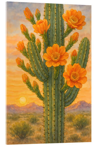 Posterlounge   Tableaux   Botanique   Plantes   Cactus   Natalie Bruns   Tableau en verre acrylique Blooming saguaro cactus in the desert at sunset