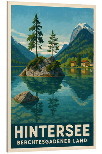 Posterlounge   Tableaux   Illustration   Sabine Wagner   Tableau en aluminium Hintersee, Berchtesgadener Land Travel Art