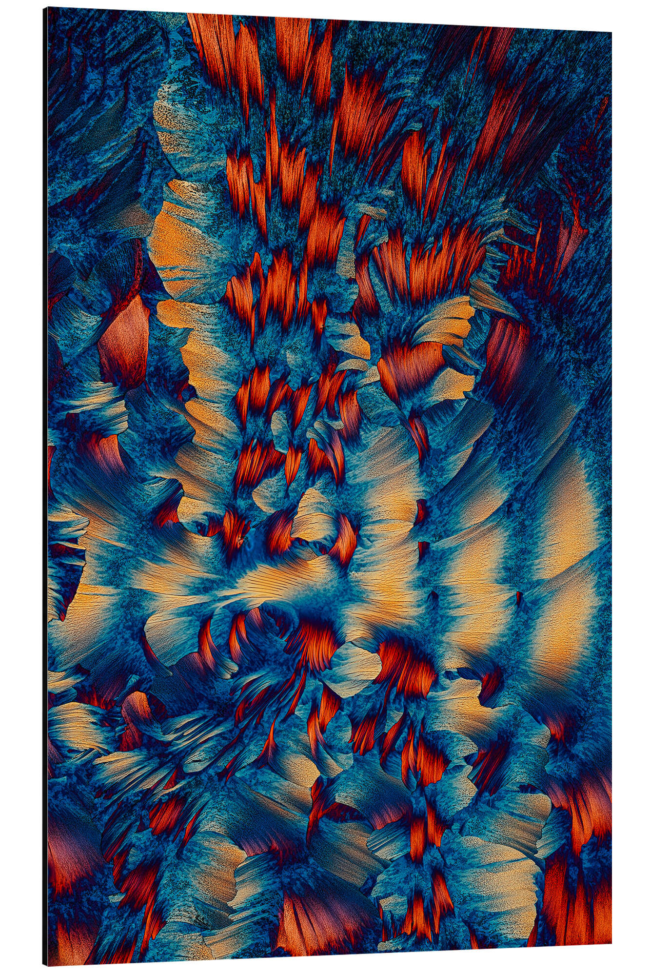 Posterlounge   Tableaux   Peinture   Art abstrait   Jaroslaw Blaminsky   Tableau en aluminium Crystal World - Orange and blue crystals under the microscope