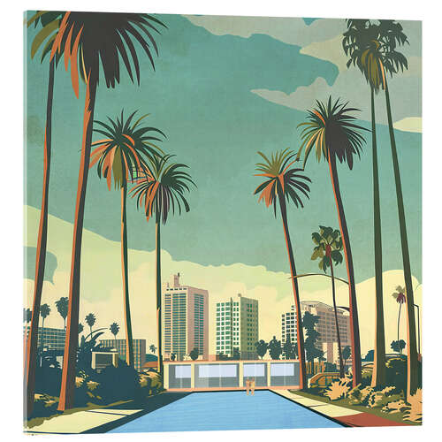 Posterlounge   Tableaux   Bleu   Layla Oz   Tableau en verre acrylique Mid Century City Pool
